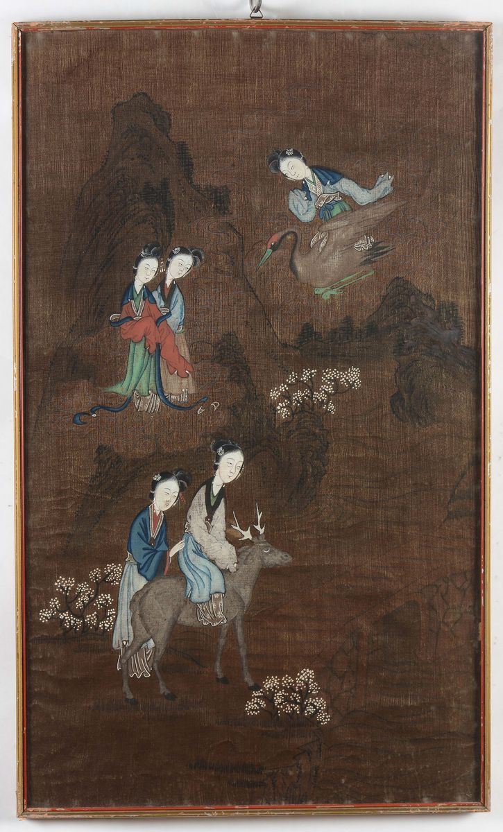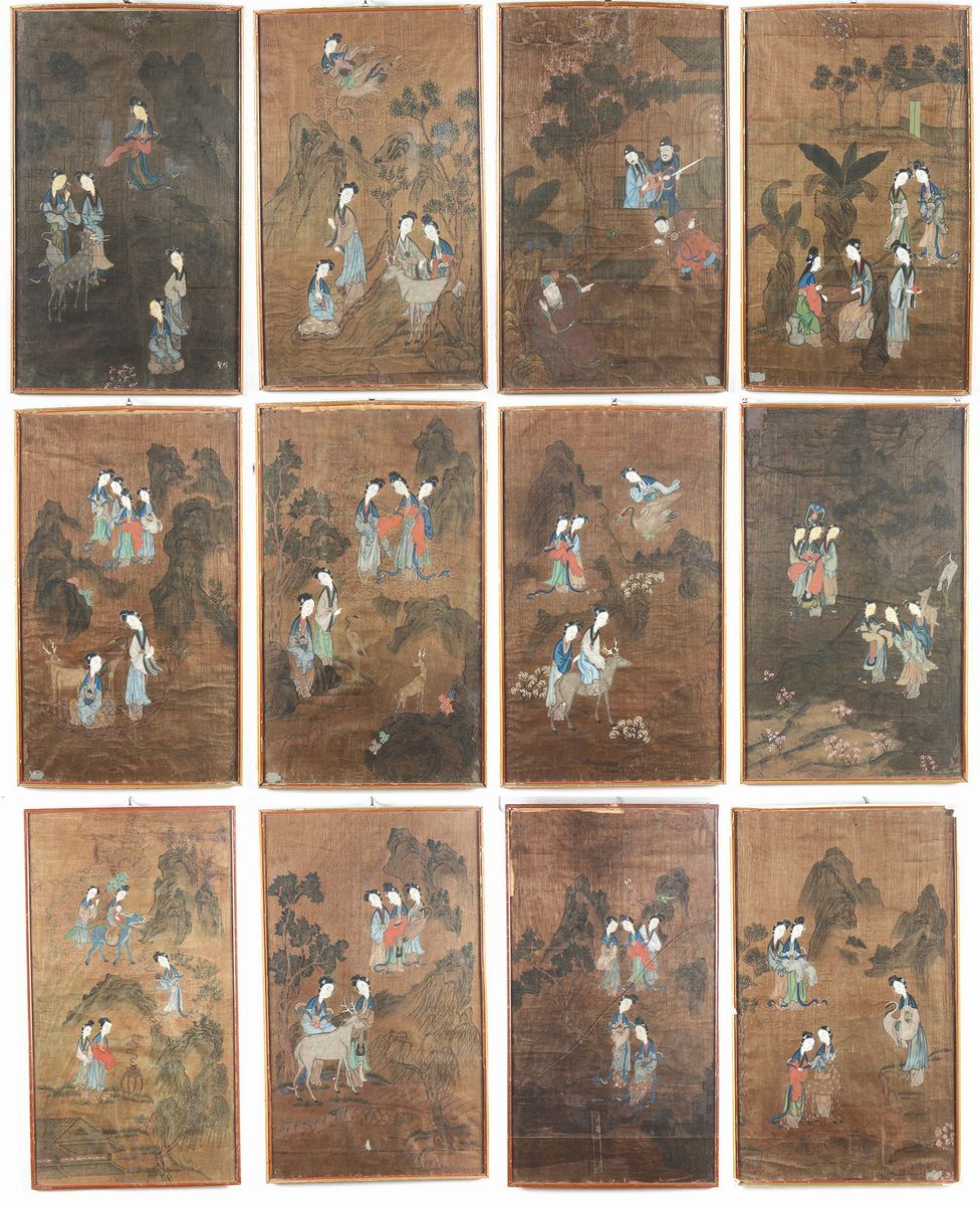 Twelve paintings on paper depicting Guanyin and deers, China, Qing Dynasty, 19th century