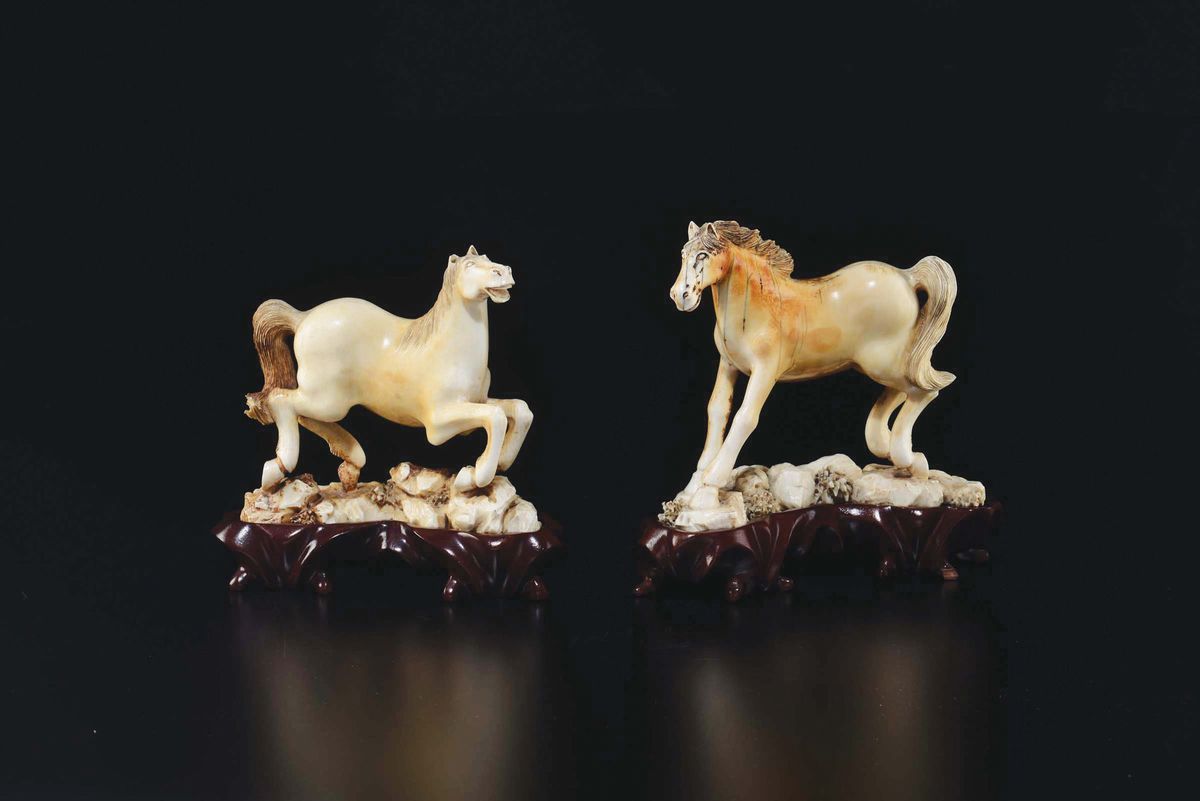 Two carved ivory figures of horses, China, early 20th century