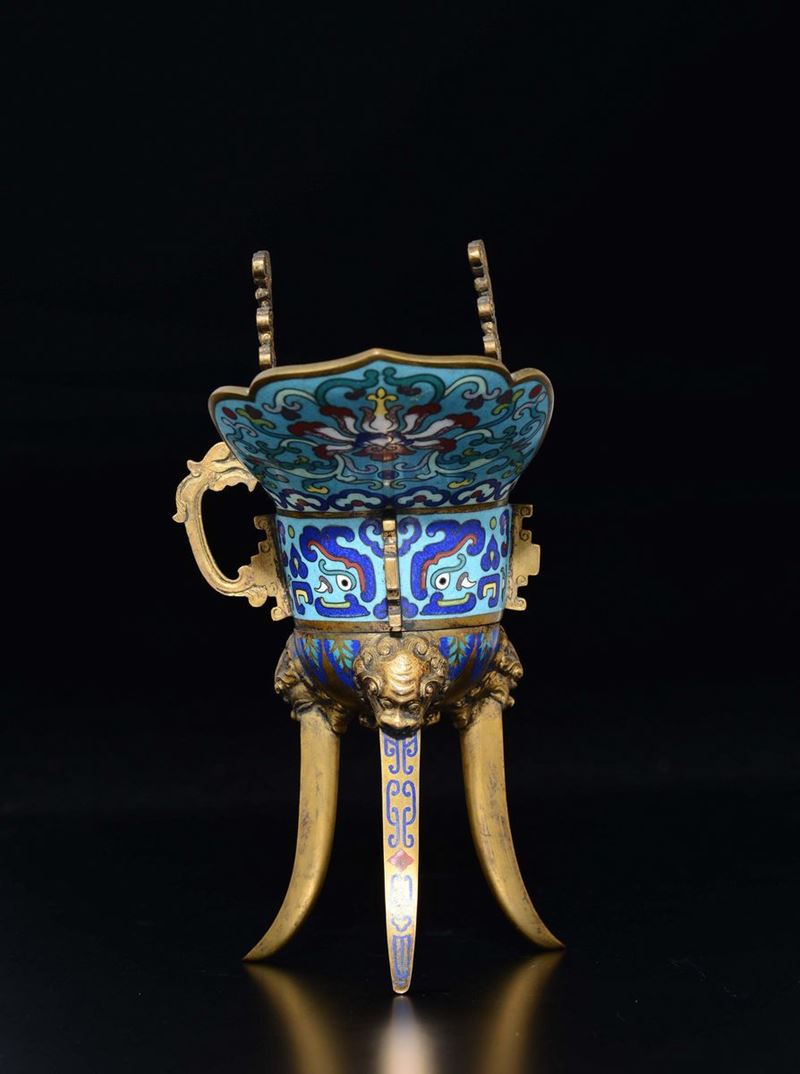 A cloissoné enamel ritual wine vessel, China, Qing Dynasty, 19th century