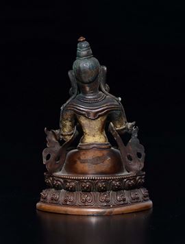 A copper figure of Amitaya with hardstone inlays, Tibet, 17th century
