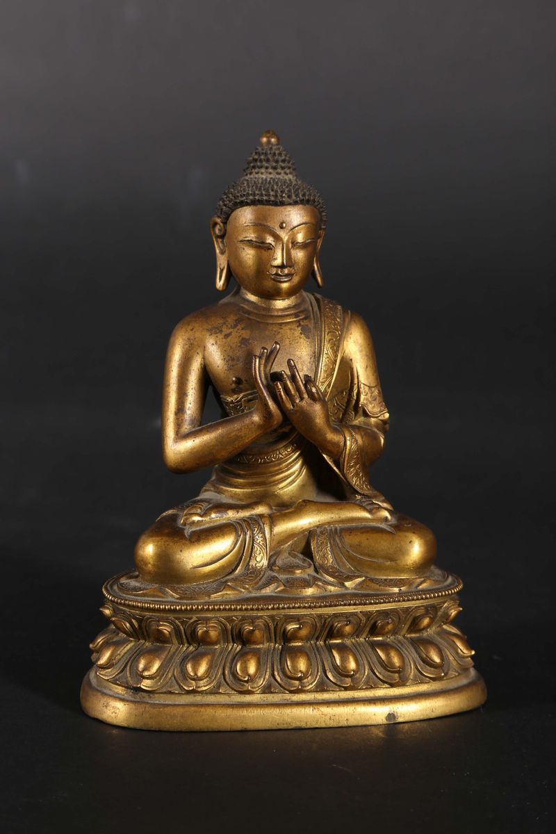 A gilt bronze figure of Sakyamuni Buddha, Tibet, 17th century