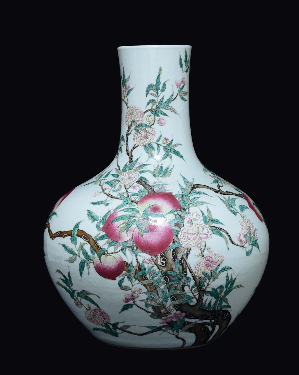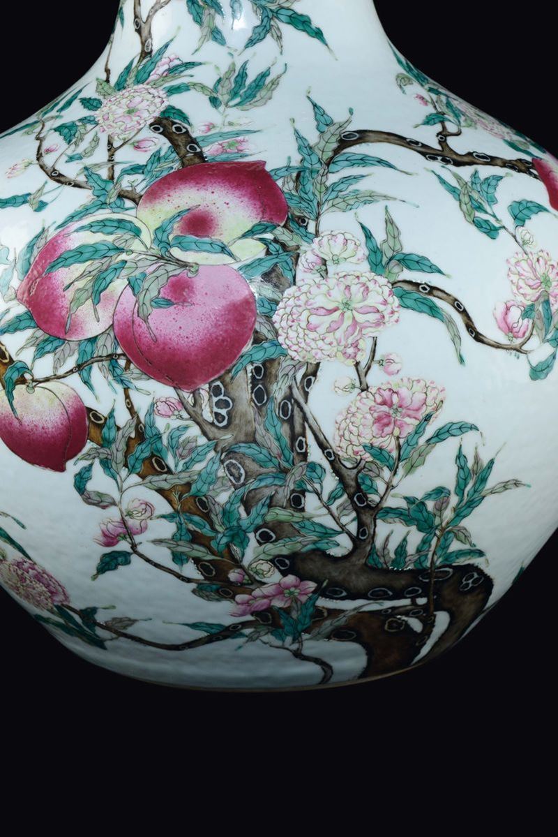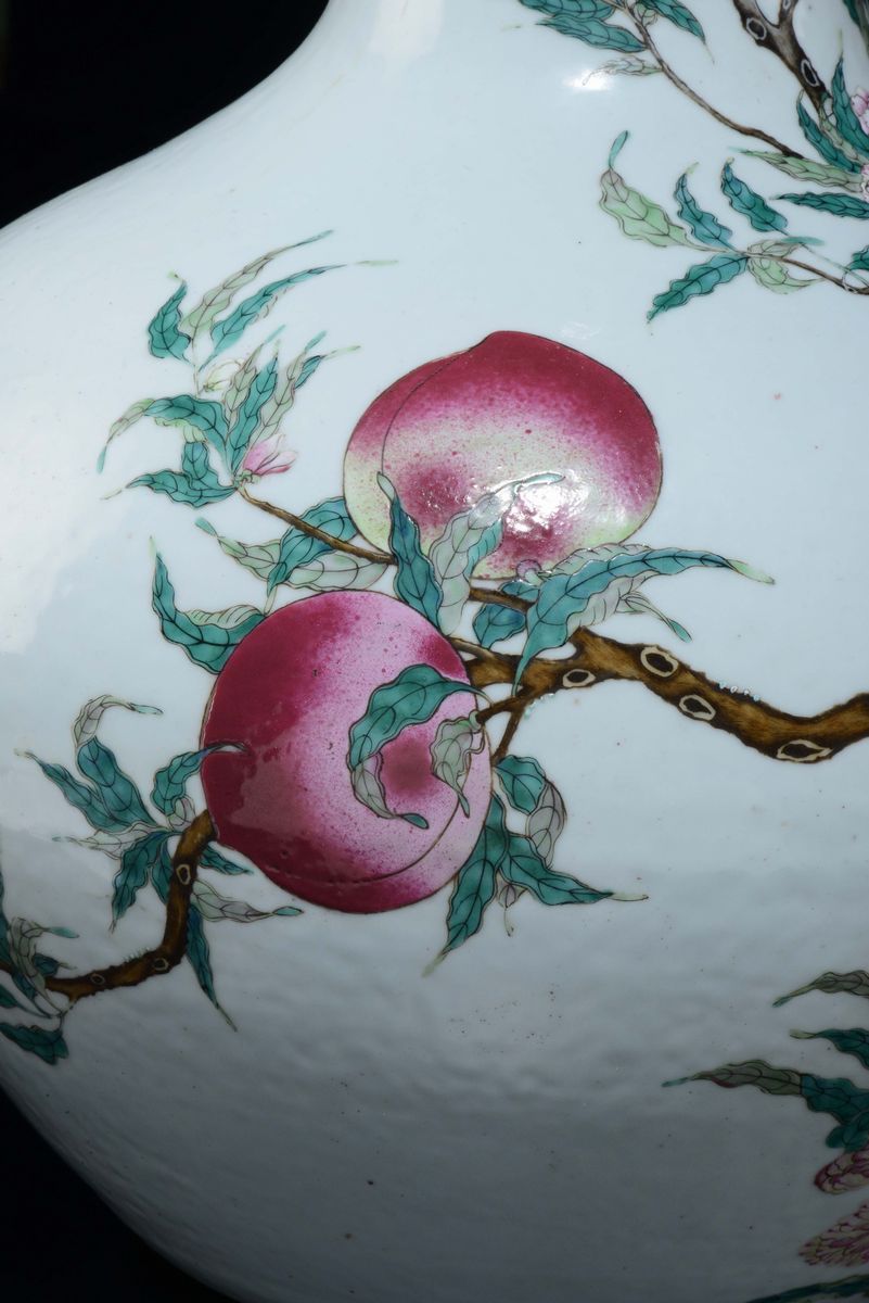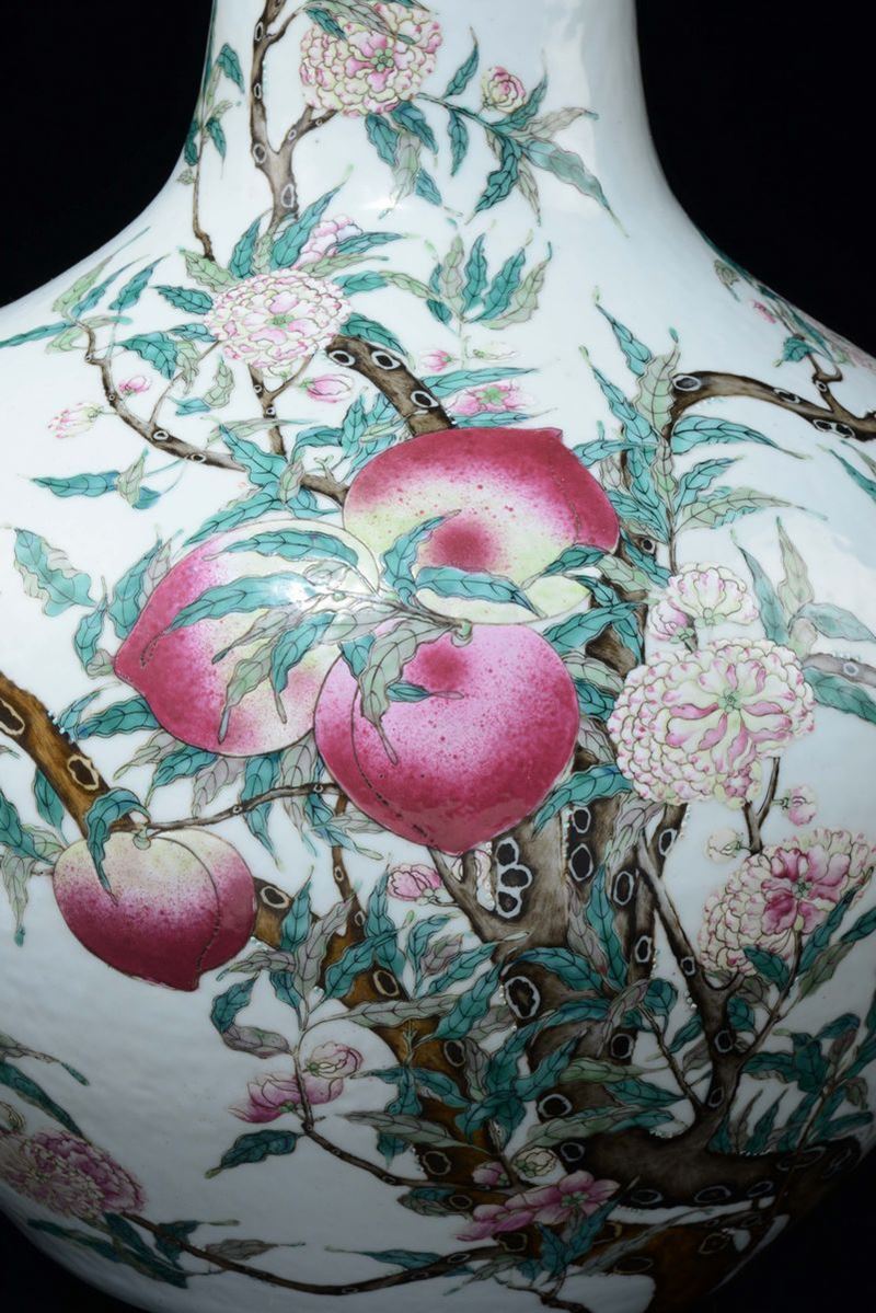 A large polychrome enamelled porcelain nine peach vase, China, Qing Dynasty, 19th century