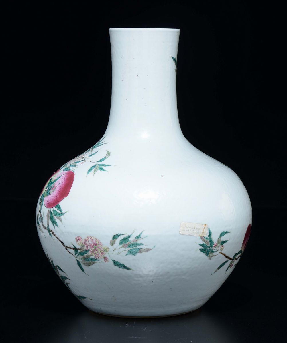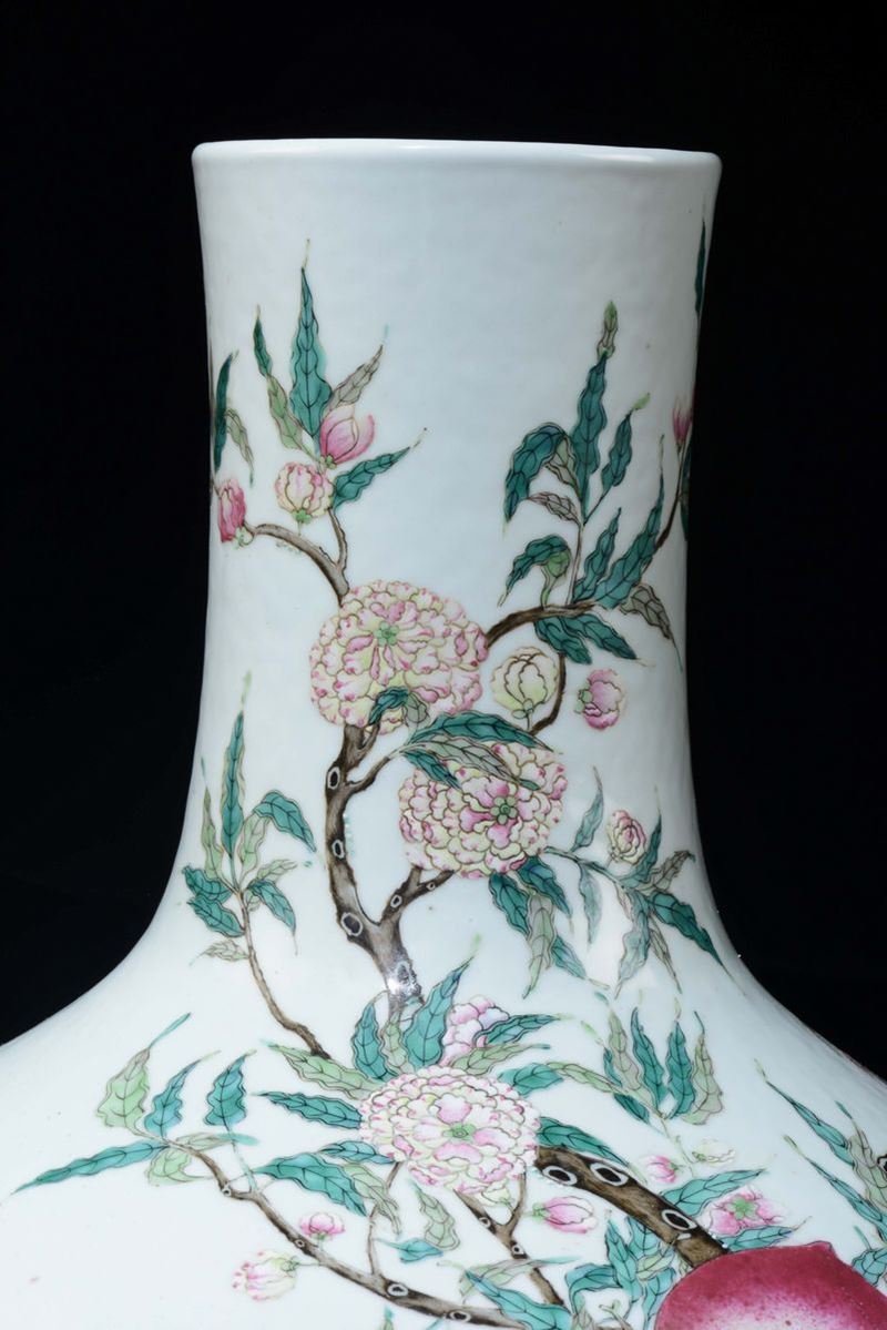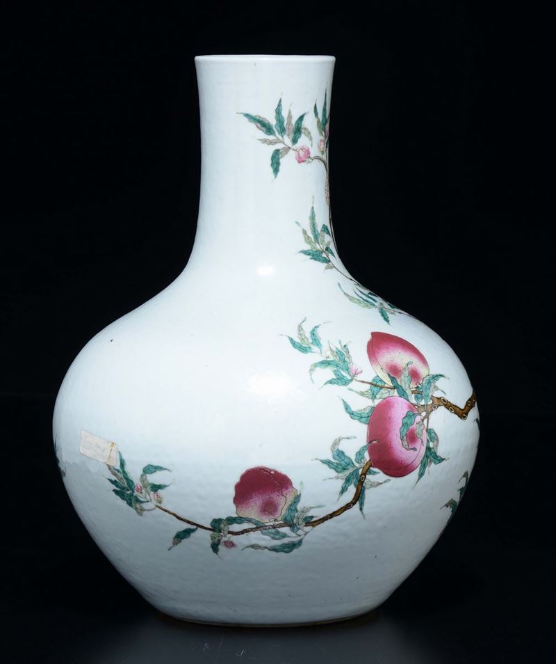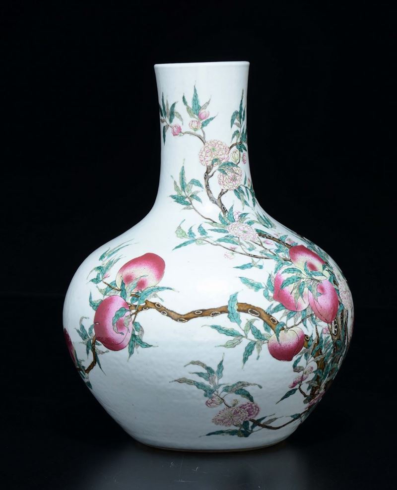 A large polychrome enamelled porcelain nine peach vase, China, Qing Dynasty, 19th century
