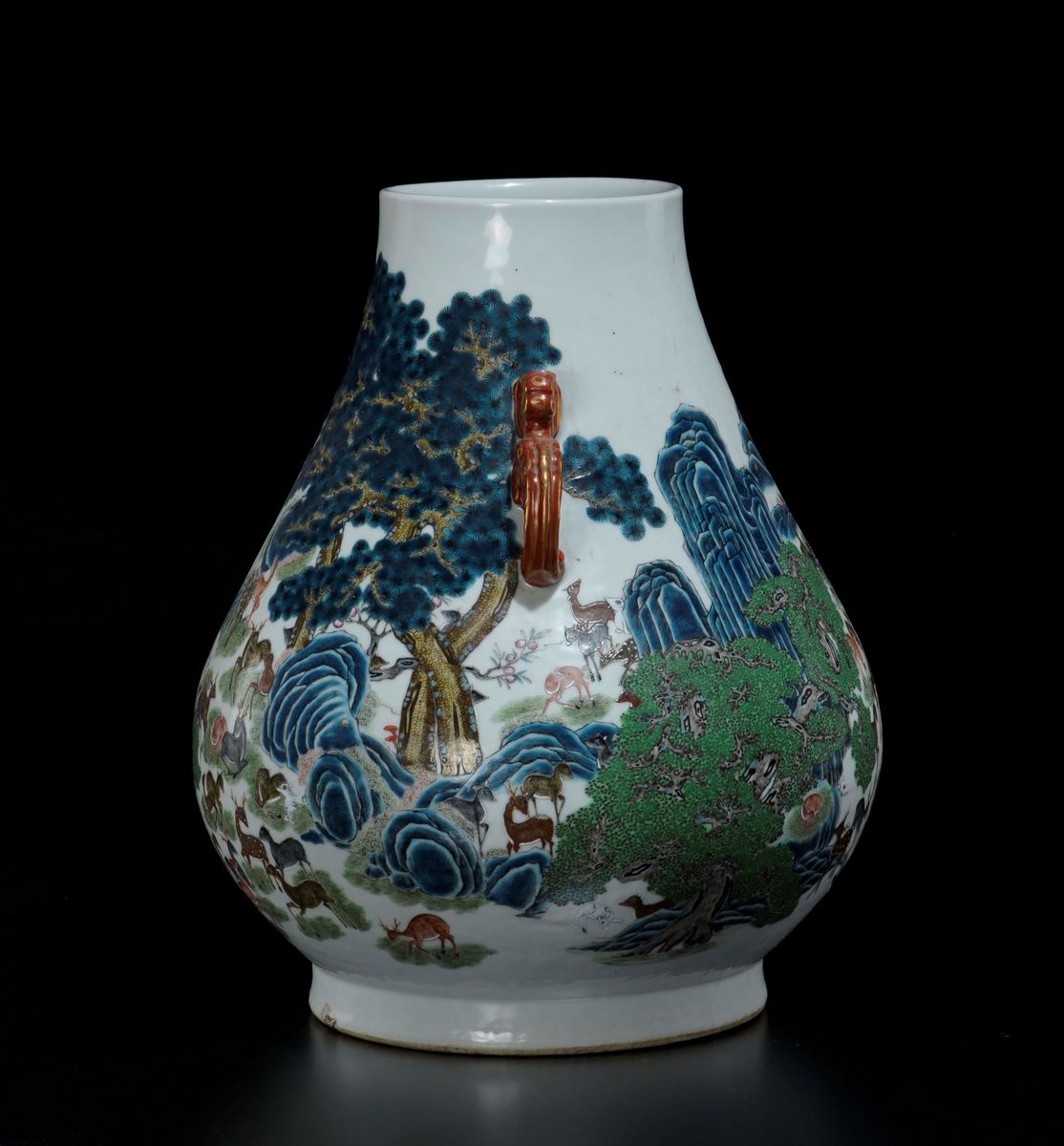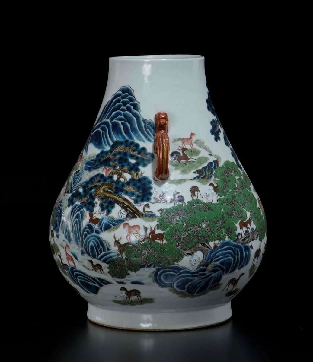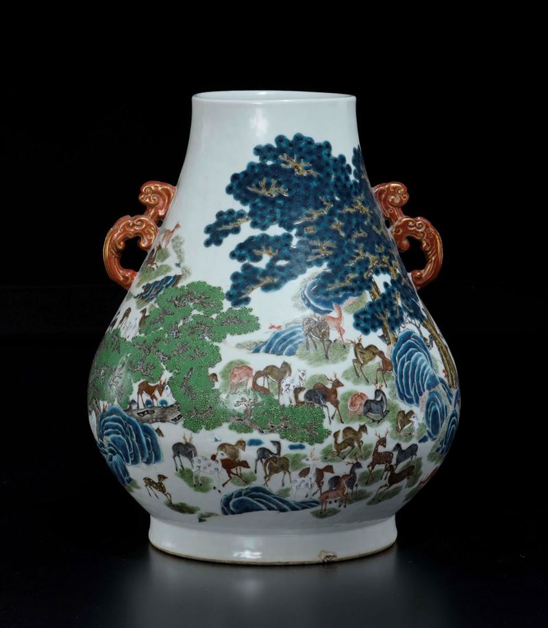 A polychrome enamelled hundred deer vase, China, Qing Dynasty, 19th century