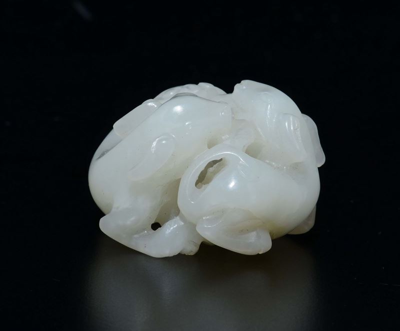 A white jade deer and mushrooms group, China, Qing Dynasty, 19th century