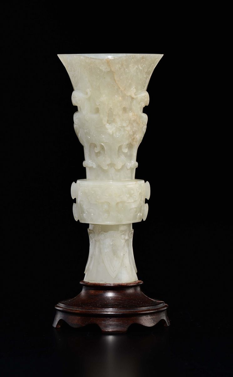 A white jade vase with archaistic decoration in relief, China, Qing Dynasty, Qianlong Period (1736-1795)