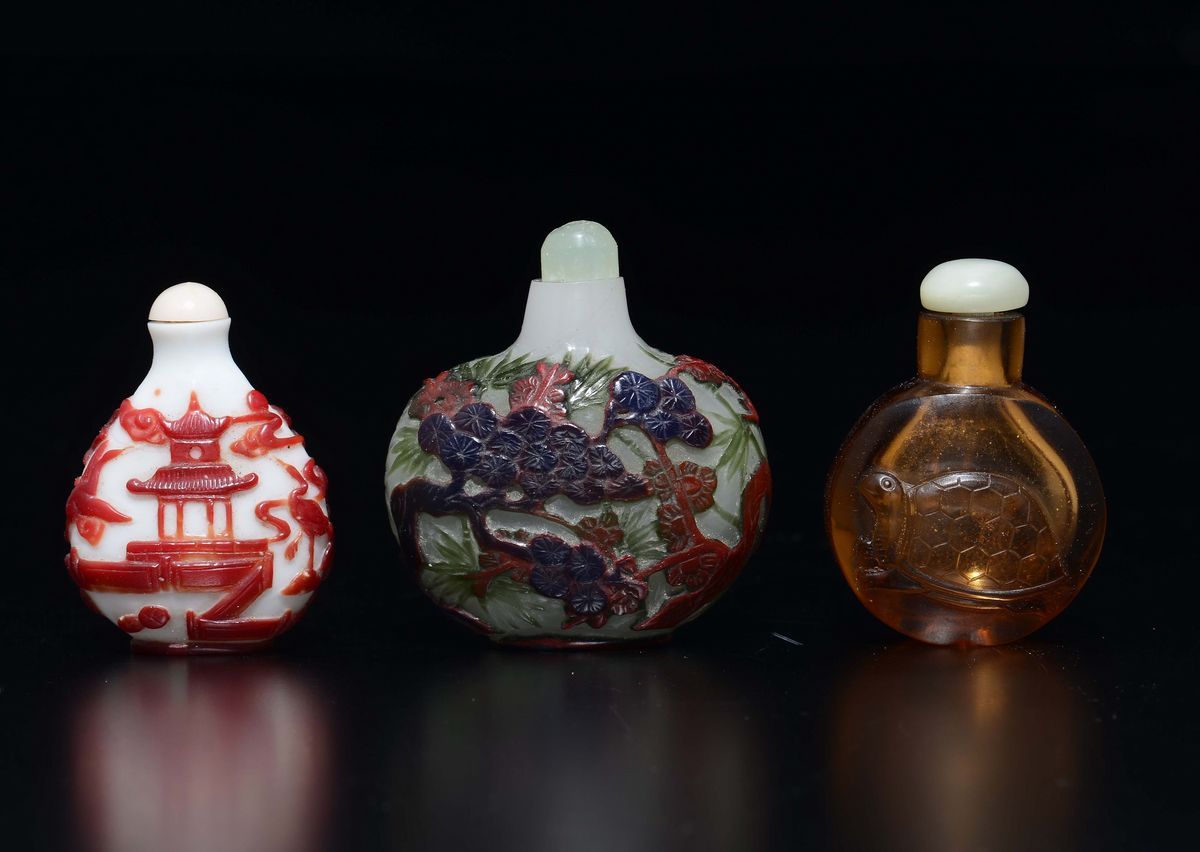 Three glass snuff bottles, China, early 20th century