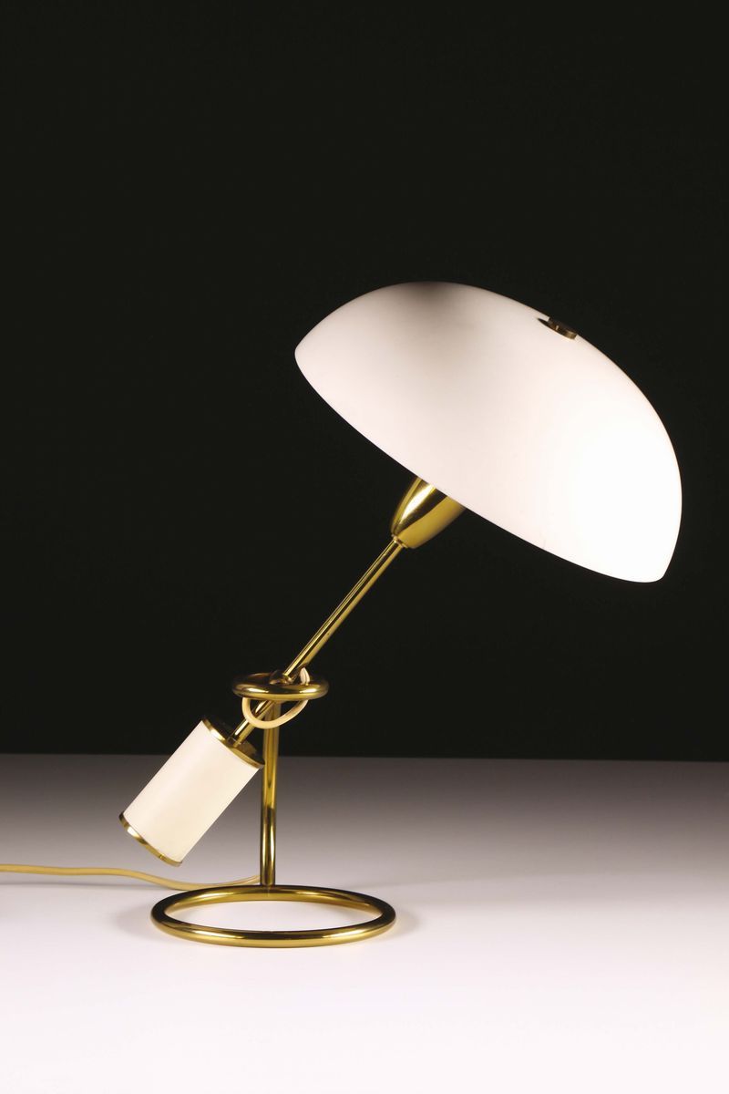 Lampada da tavolo in ottone e alluminio laccato. Prod. Arredoluce, Italia, 1953cm 25x40