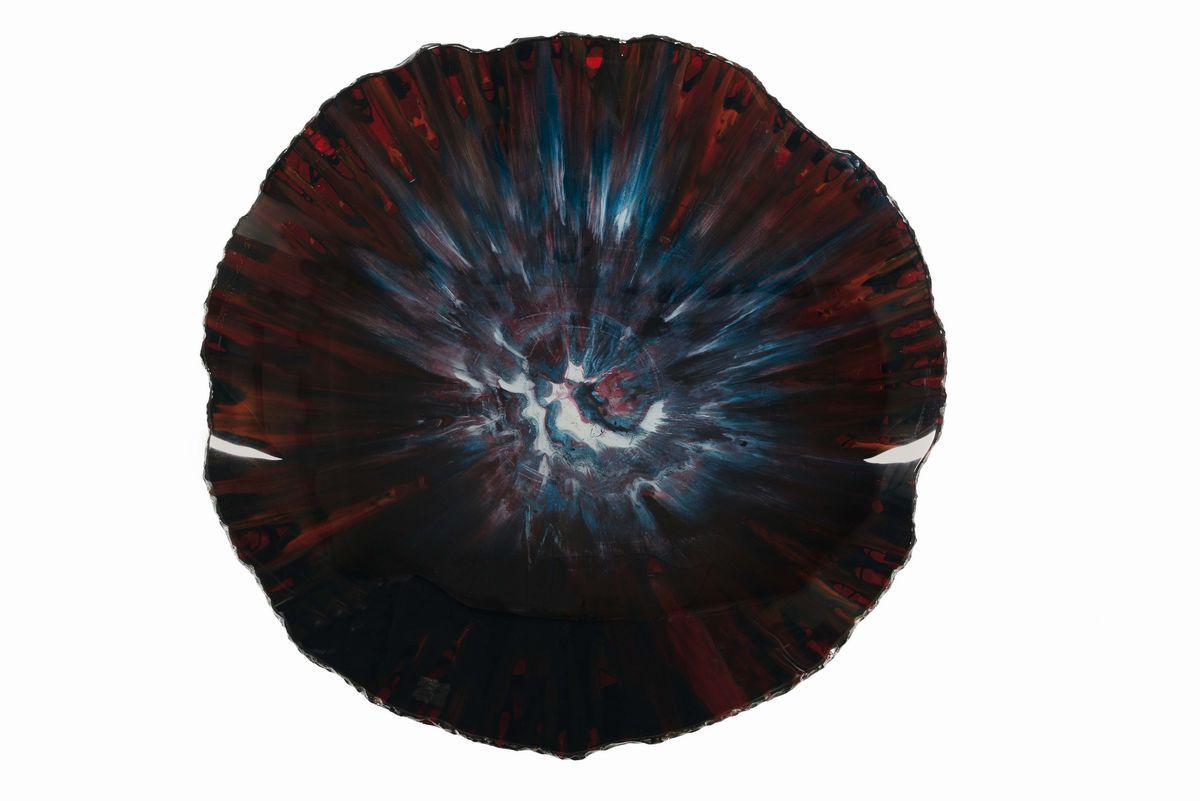 Centrotavola in vetro decorato a con base in legno.cm 64Prod. Fontana Arte, Italia, 1950 ca.