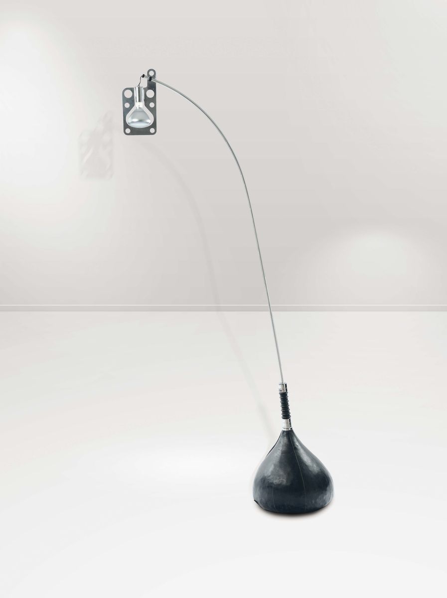 Lampada Bul-Bo orientabile in alluminio con base in similpelle. Prod. Arbo, Italia, 1969cm 110x240x50
