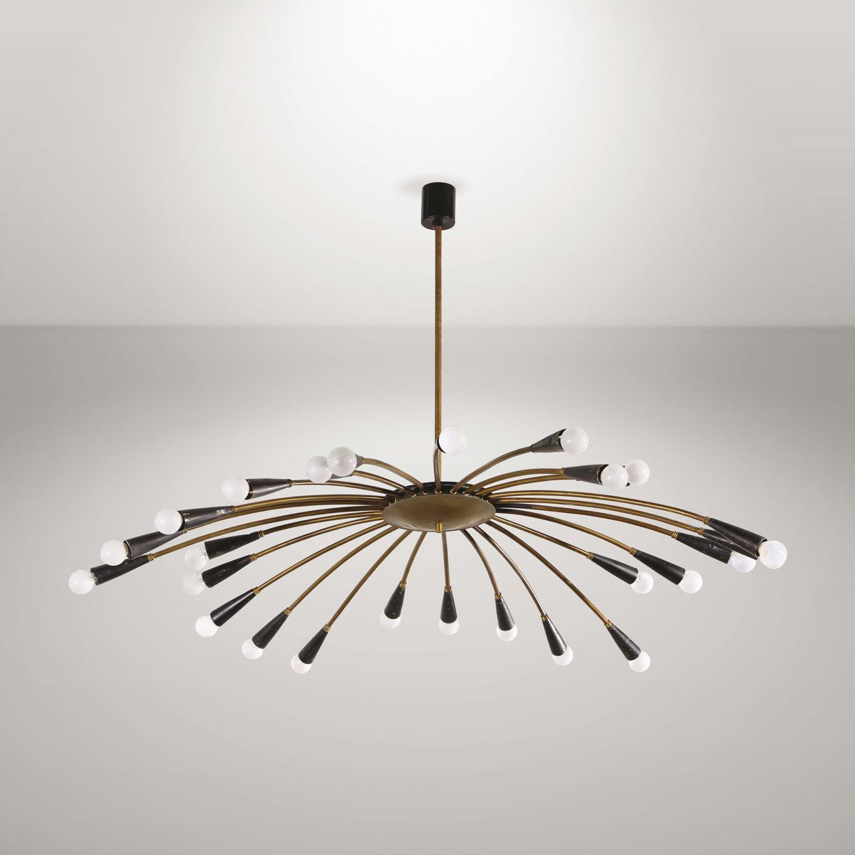Lampada da sospensione in ottone e metallo verniciato.Prod. Stilnovo, Italia, 1950 ca.cm 120x92
