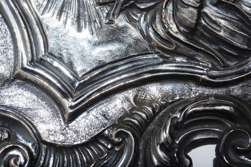 Acquasantiera argento sbalzato e cesellato, Genova, punzone della Torretta per l’anno 1737