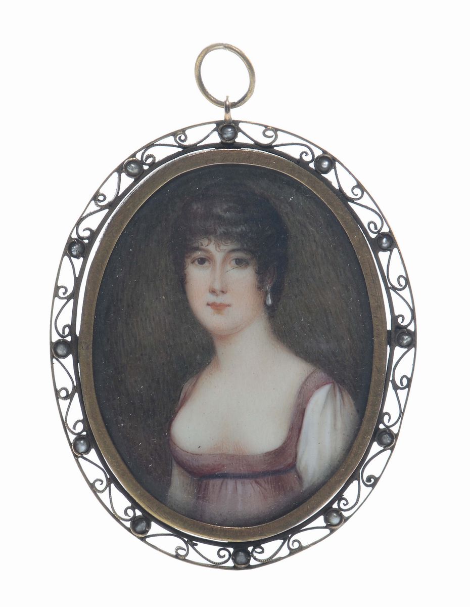 Anonimo miniatore del XIX secolo Fanciulla con orecchini