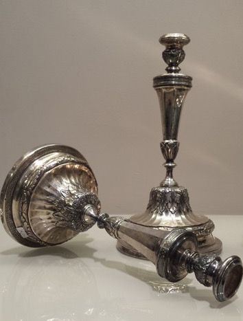 Coppia di candelieri in argento, XVIII secolo