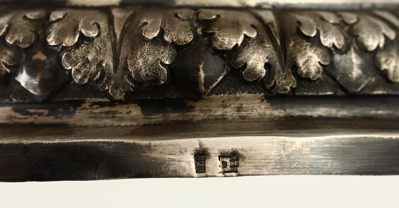 Coppia di doppieri in argento sbalzato e cesellato. Genova, punzone della Torretta per l’anno (1)821