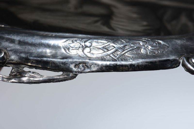 Cornice ovale contenente immagine della Madonna con Bambino, in argento sbalzato e cesellato. Argentiere italiano della [..]