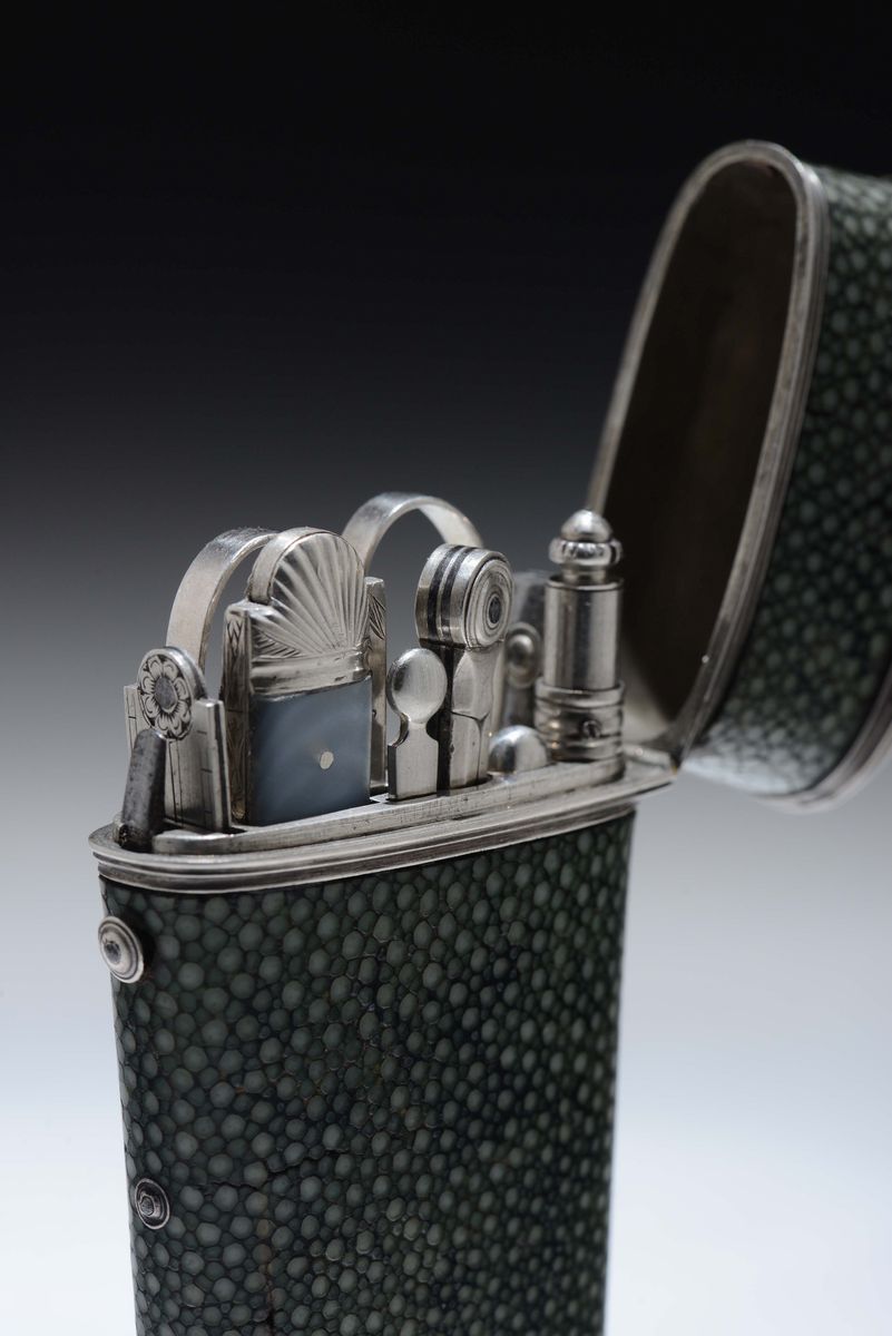 Etui in argento con contenitore rivestito in galluchat, XVIII-XIX secolo
