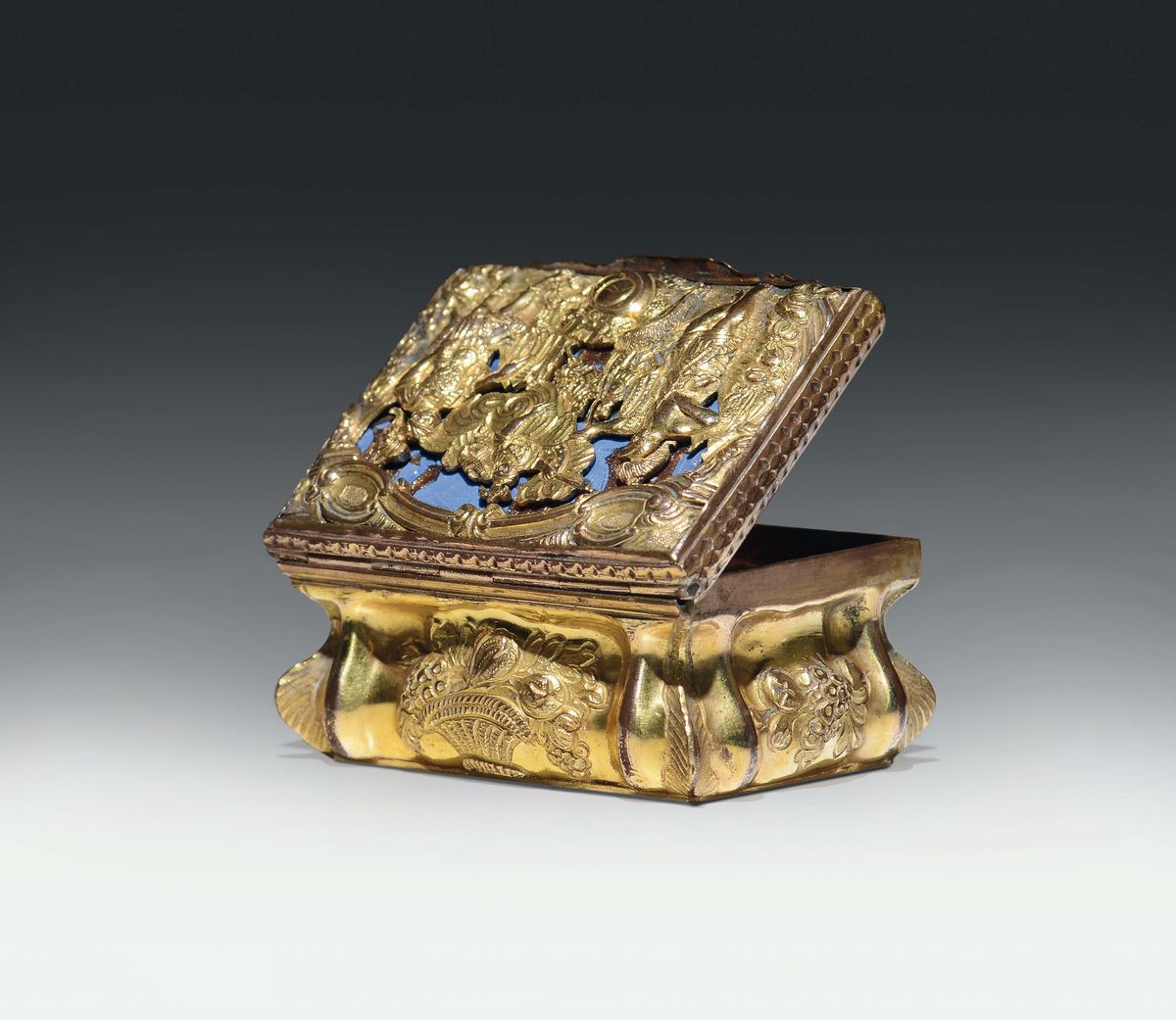 Scatola in rame dorato e lapislazzulo. Europa,Germania (?) XVIII secolo