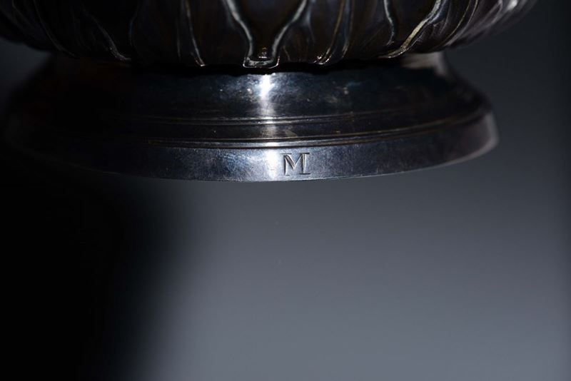 Zuccheriera in argento fuso, sbalzato e cesellato. Genova, punzone della Torretta per l’anno 1782