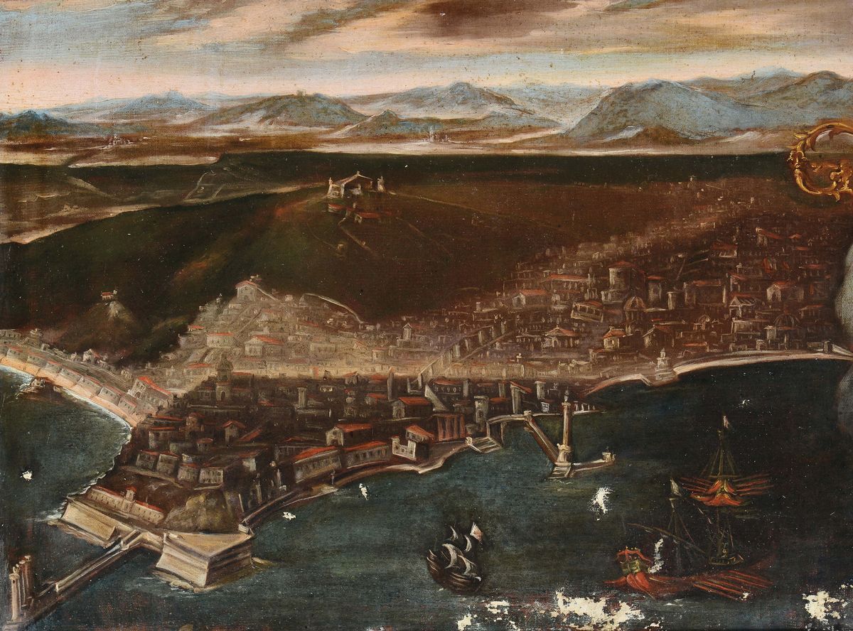 Scuola Napoletana del XVII secolo Veduta di Napoli