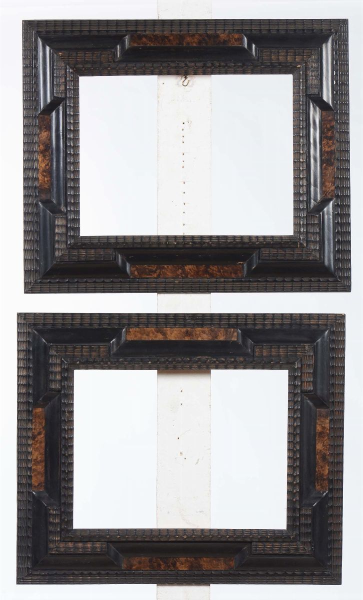 Coppia di cornici guillochè in legno ebanizzato, XX secolo