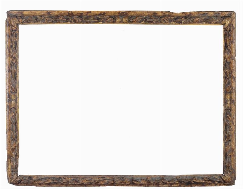 Coppia di cornici intagliate a foglie e laccate a finto marmo, XVIII secolo