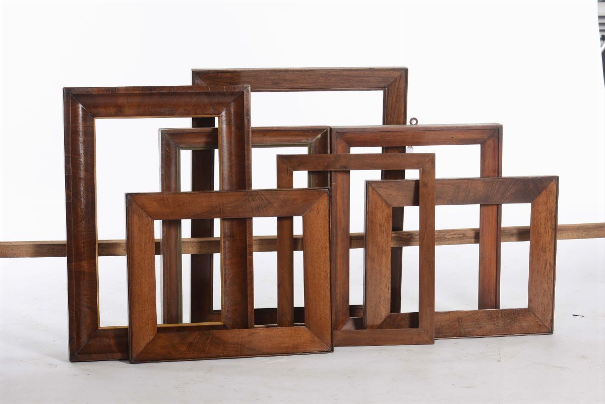 Sette cornici in legno a fascia piatta, XX secolo