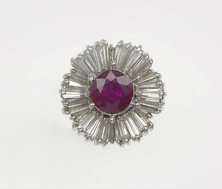 A ruby and diamond cluster ring