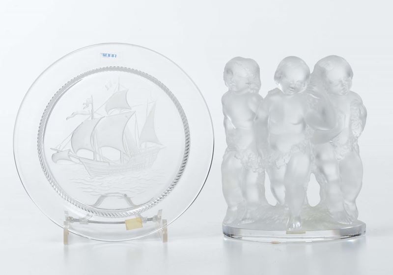 nel lotto anche piatto e gruppo con bambini in cristallo Lalique