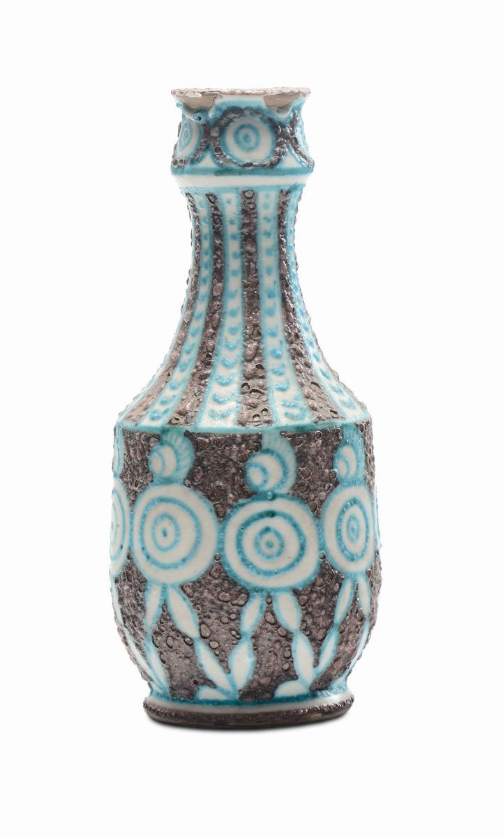 terracotta maiolicata dipinta a mano con smalti bianco, azzurro e marrone. Altezza cm 32