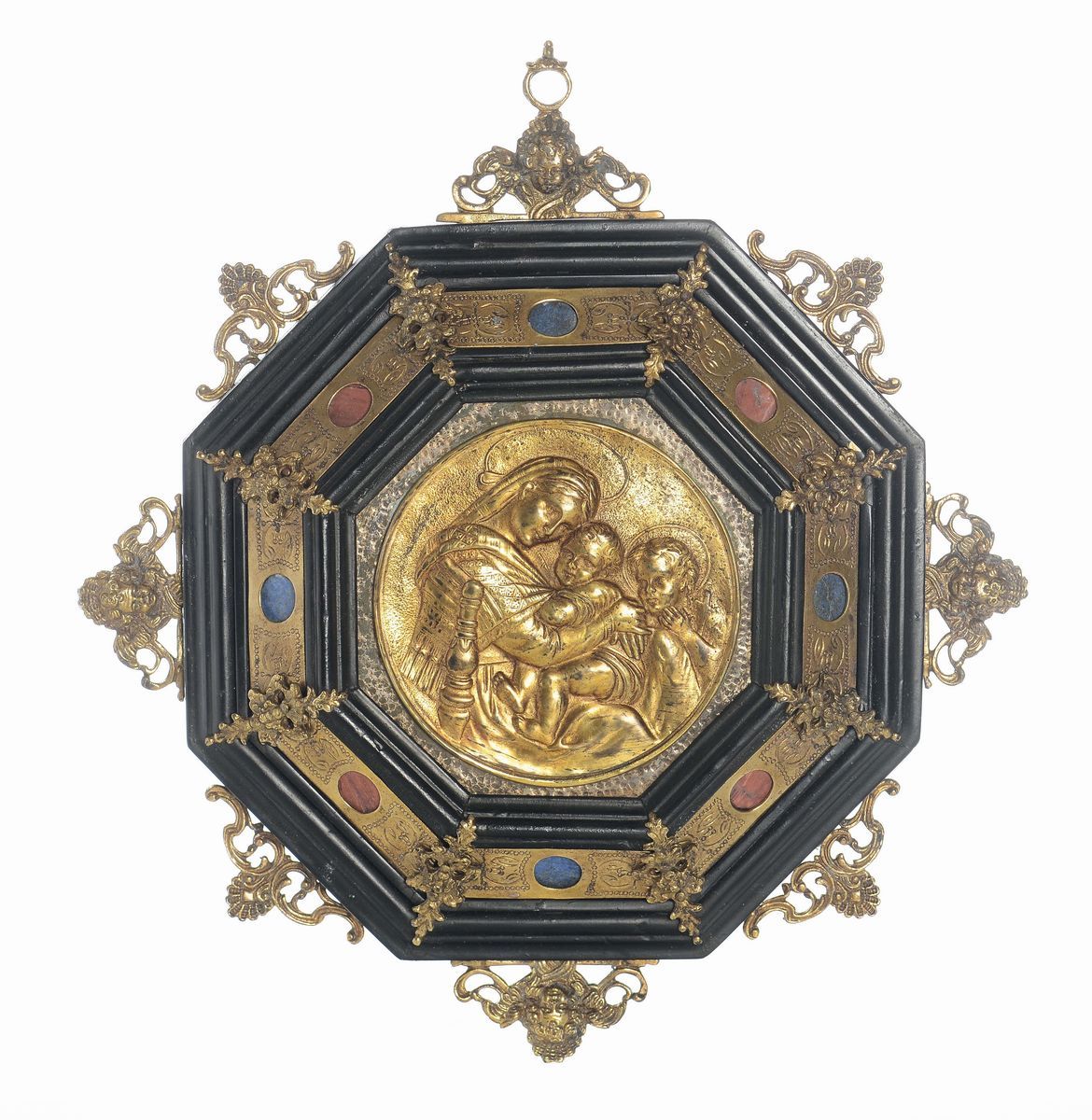 Cornice ottagonale con bronzi, pietre dure e placca in bronzo dorato, XIX secolo