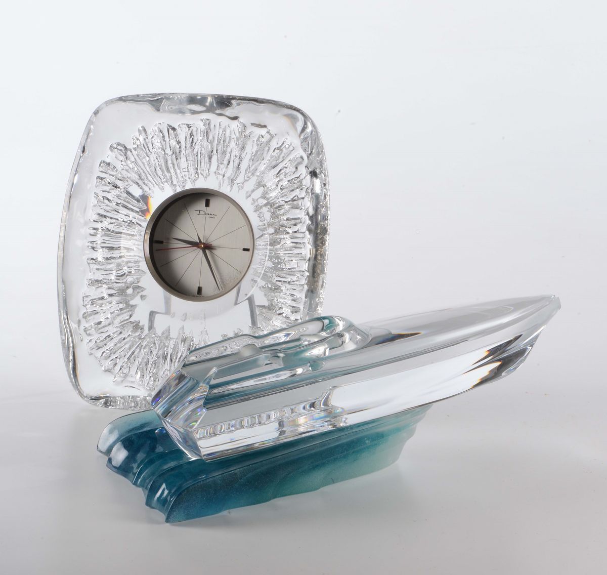 Motoscafo in cristallo molato e orologio con cornice lavorata