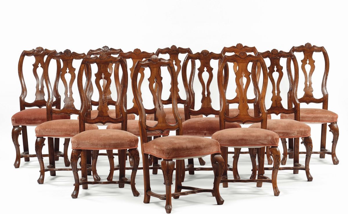 Dodici Sedie Luigi XV in noce, XVIII-XIX secolo