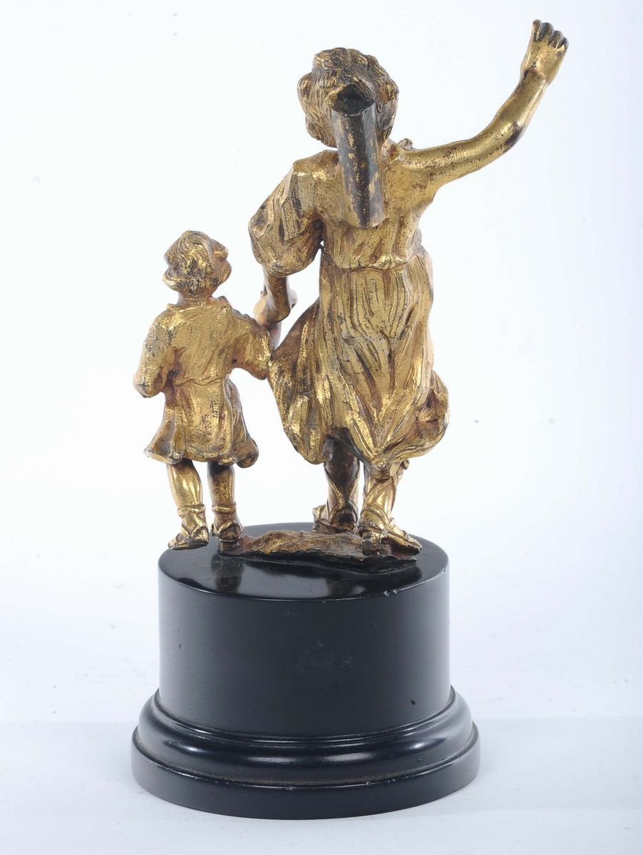 Figura in bronzo fuso, cesellato e dorato raffigurante Tobiolo e l’Angelo, Italia XVII secolo