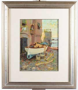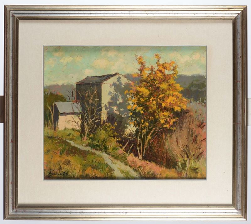 olio su tela, cm 50x60, e altri due dipinti di Benedetti, paesaggio cm 5x0x60 e paesaggio marino cm 40x30