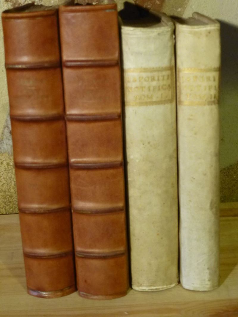 In Roma,G.Salomoni,1754. Due tomi. Legature coeve in piena pergamena rigida. Si unisce nel Lotto: Semeria,Gio.Battista - Secoli Cristiani della Liguria. Torino,Chirio e Mina,1843. Gore e piccoli difetti.Legature moderne in mezza pelle.