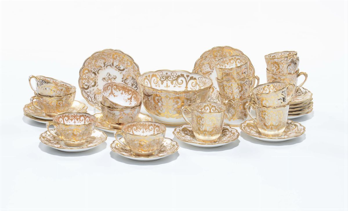 Gruppo di tazze in porcellana bianca e oro