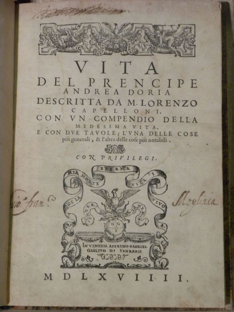 Lorenzo Capelloni Vita del prencipe Andrea Doria descritta da M.Lorenzo Capelloni..