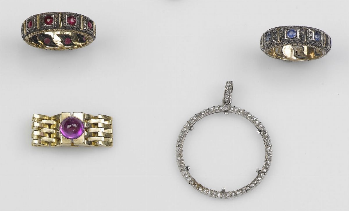 Lot composed by three rings and a piece of pendant