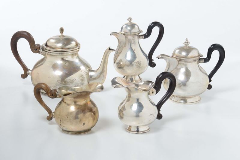 Lotto di cinque pezzi diversi in argento, XX secolo