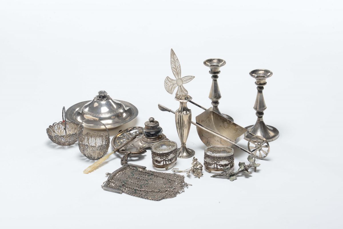 Lotto di piccoli oggetti in argento e filigrana