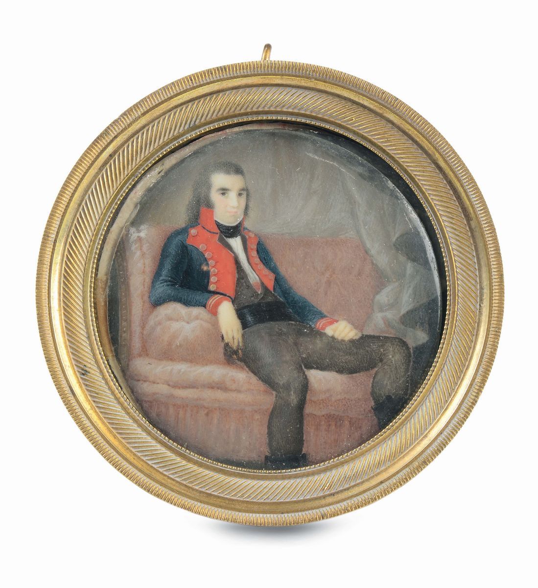 Miniatura tonda su avorio raffigurante ritratto di ufficiale, XIX secolo
