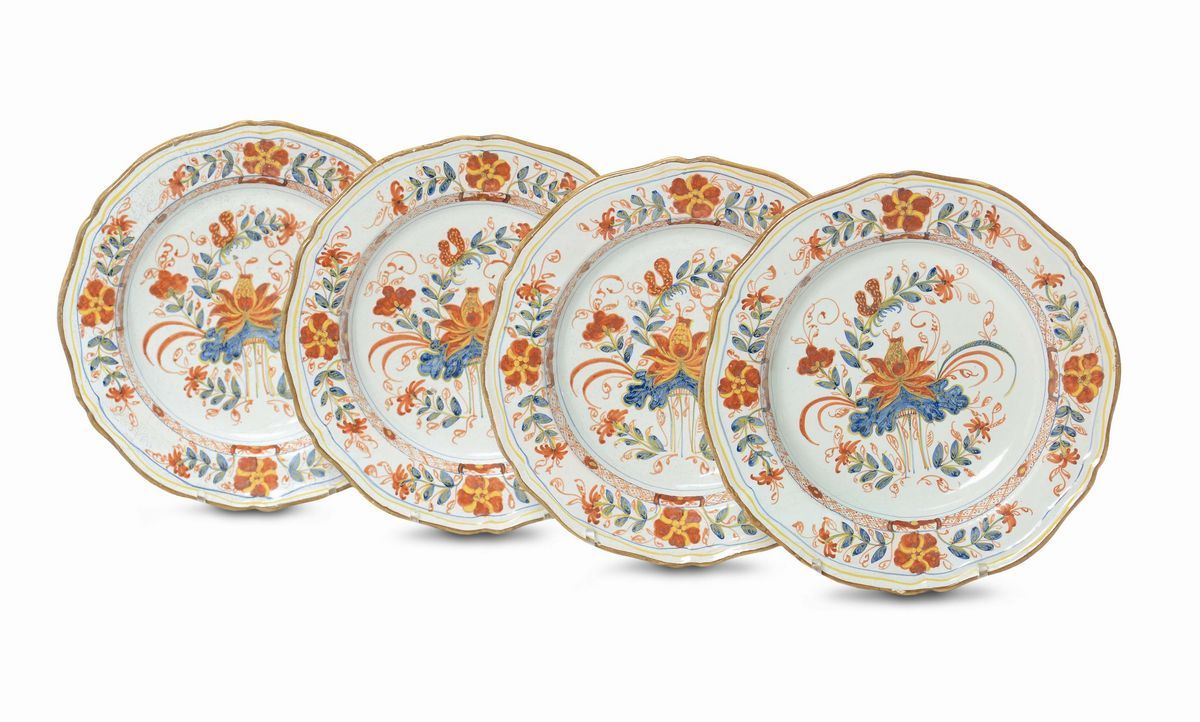 Quattro piatti in maiolica policroma, Fermiani XIX secolo