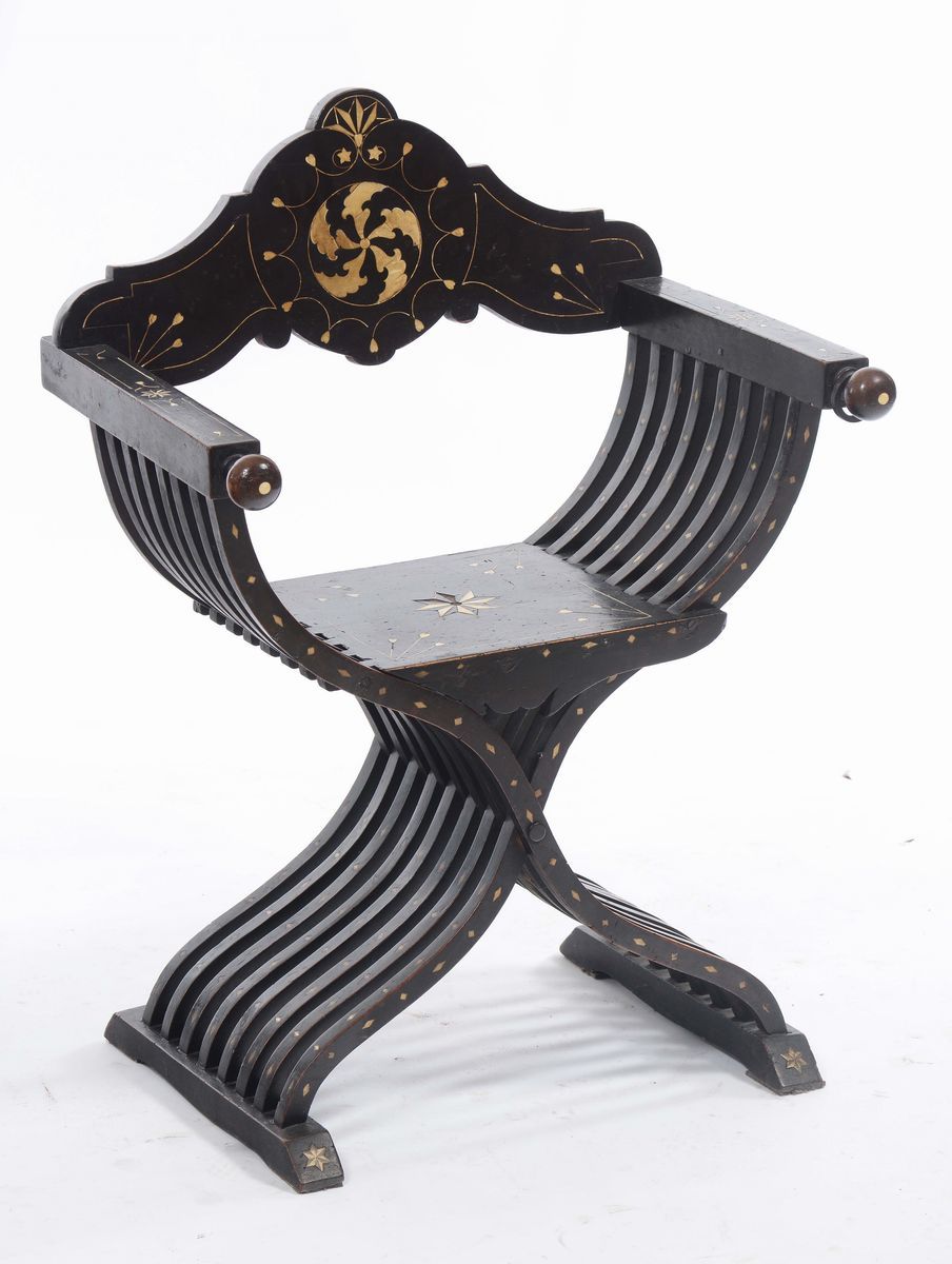 Sedia Savonarola ebanizzata con inserti in avorio