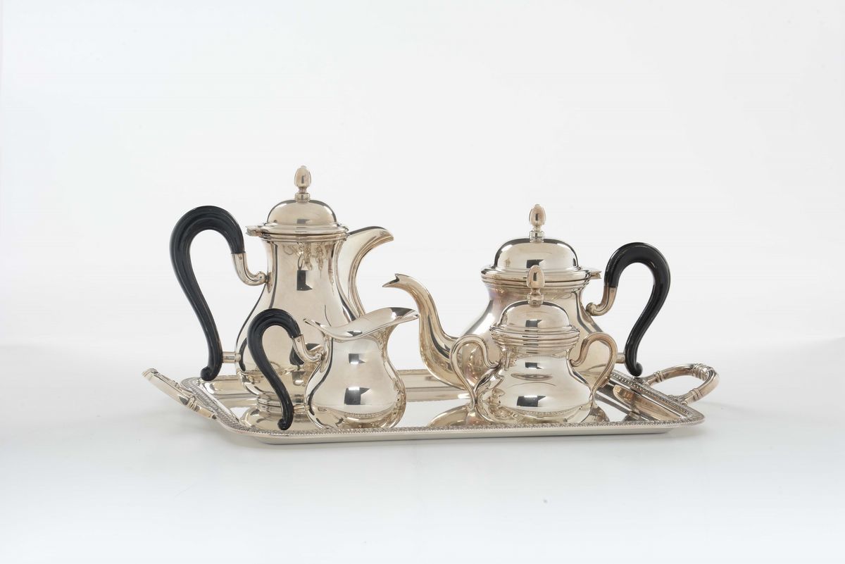 composto da teiera, caffettiera, lattiera, zuccheriera e vassoio.Gr. 2200