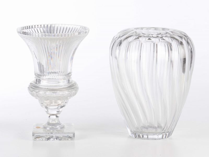 Set da punch in cristallo e due grandi vasi in cristallo molato