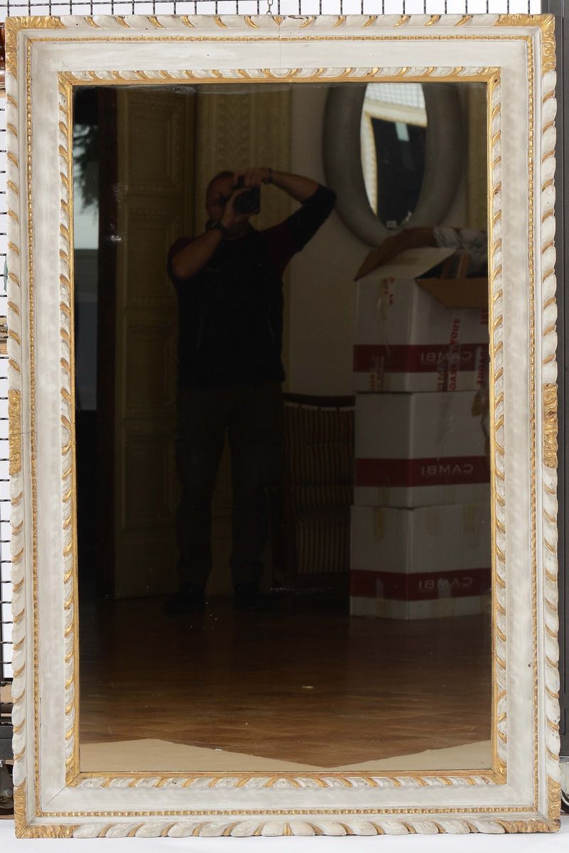 Specchiera in legno laccato e dorato, XIX secolo
