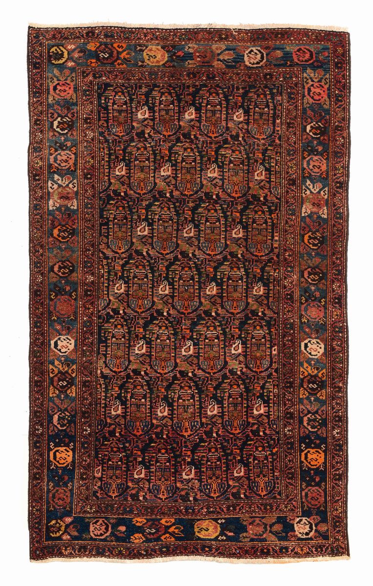 fondo blu con bothe, bordura azzurra con rose, cm 208x130