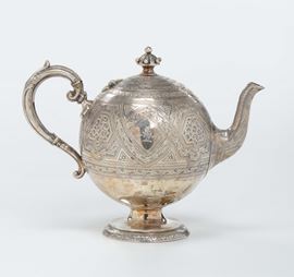 Teiera in argento inciso e sbalzato, Francia XIX secolo