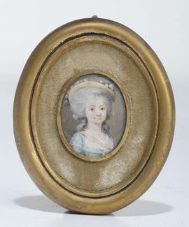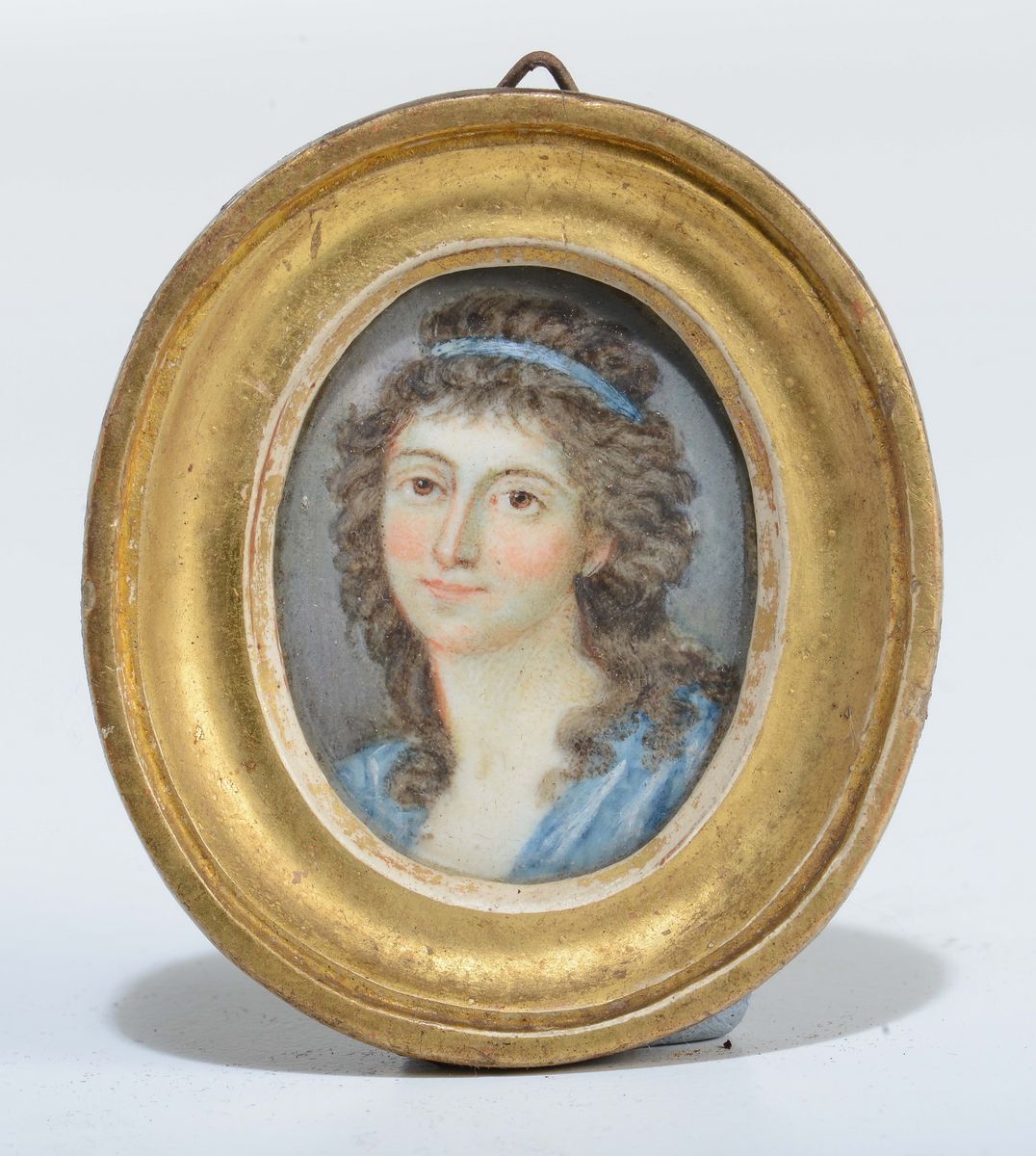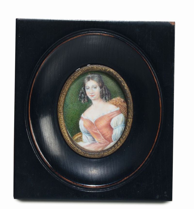 Tre miniature su avorio raffiguranti ritratti femminili, XIX secolo